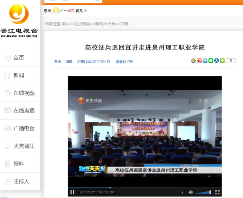 • 【晋江电视台】高校征兵巡回宣讲走进泉州理工职业学院