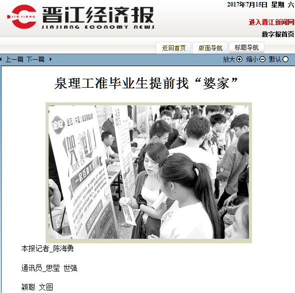 【晋江经济报】泉理工准毕业生提前找“婆家”