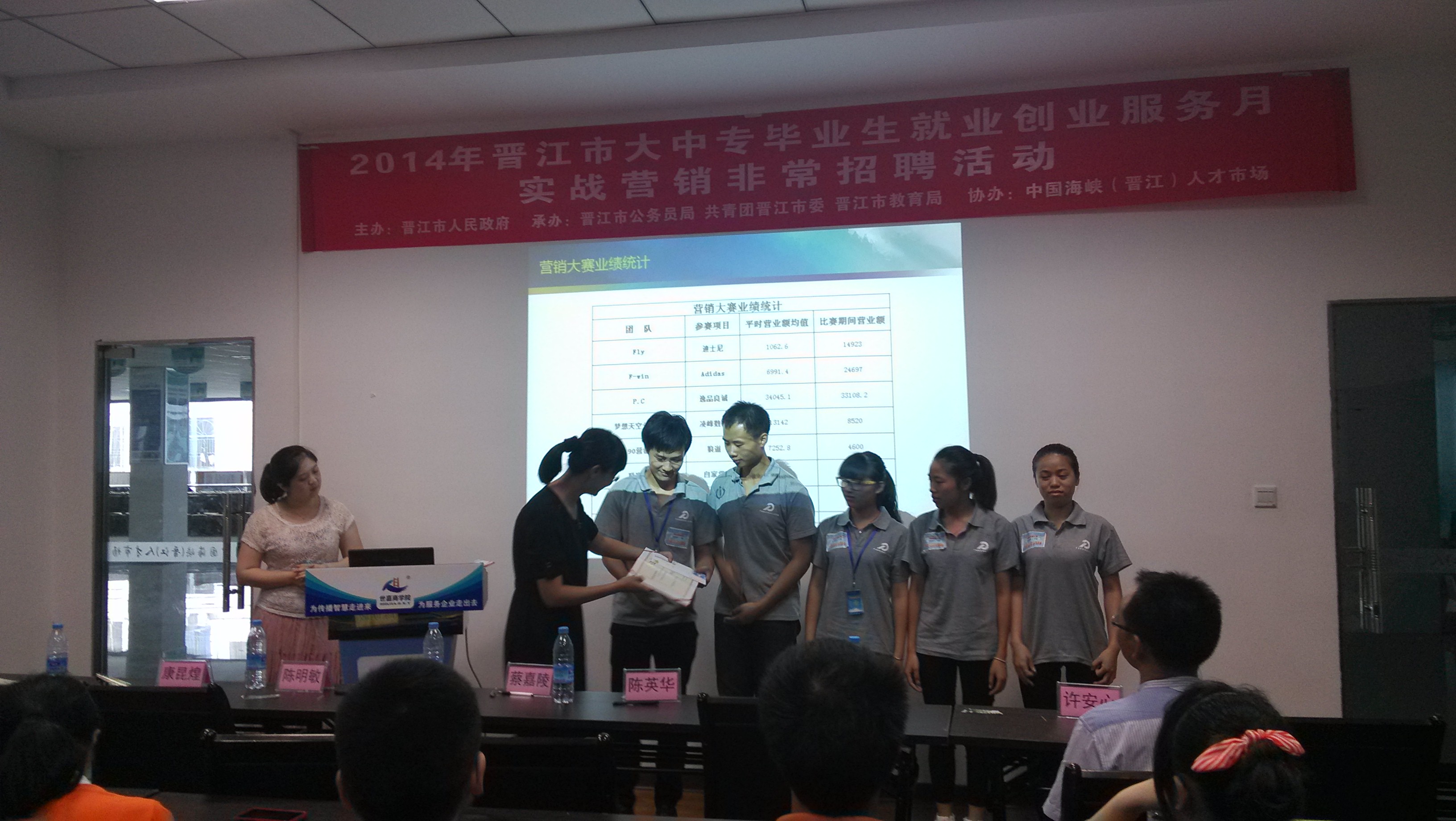 90营销队获得二等奖 开拓队获得三等奖 卓越队获得三等奖 联赢队获得优秀奖 2014年7月9日, “2014年晋江市毕业生就业创业服务月实战营销比赛”在晋江宝龙广场拉开帷幕,我校...