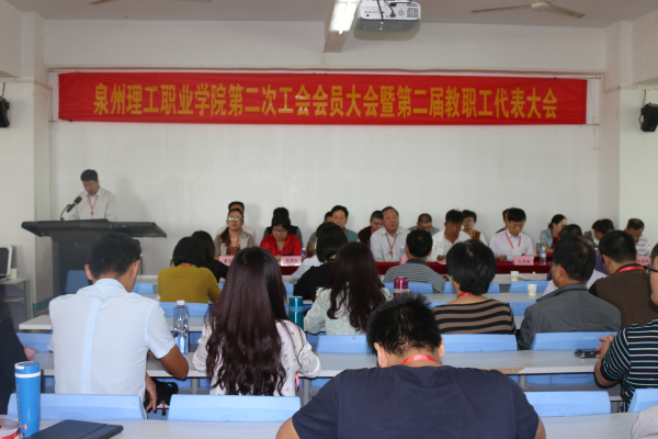 校党委书记林其天发表致辞 全体教职工代表合影 2015年10月17日上午,泉州理工学院第二次工会会员大会暨第二届教职工代表大会在教学楼238教室举行。泉州市教育局副局长、市教育工会主席毛...