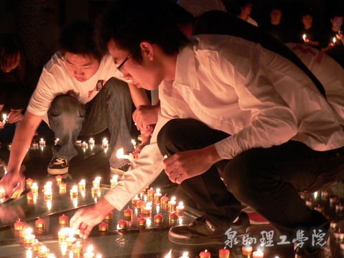 昨夜的思恩楼大厦内,烛光闪烁,音乐低回,上千名泉州理工学院师生在这里举行烛光晚会,为四川灾区人民祈福。 本场晚会由车辆工程系师生发起,得到了校内广大师生的积极响应。晚会定于8点开始,很多师生早早便来到...