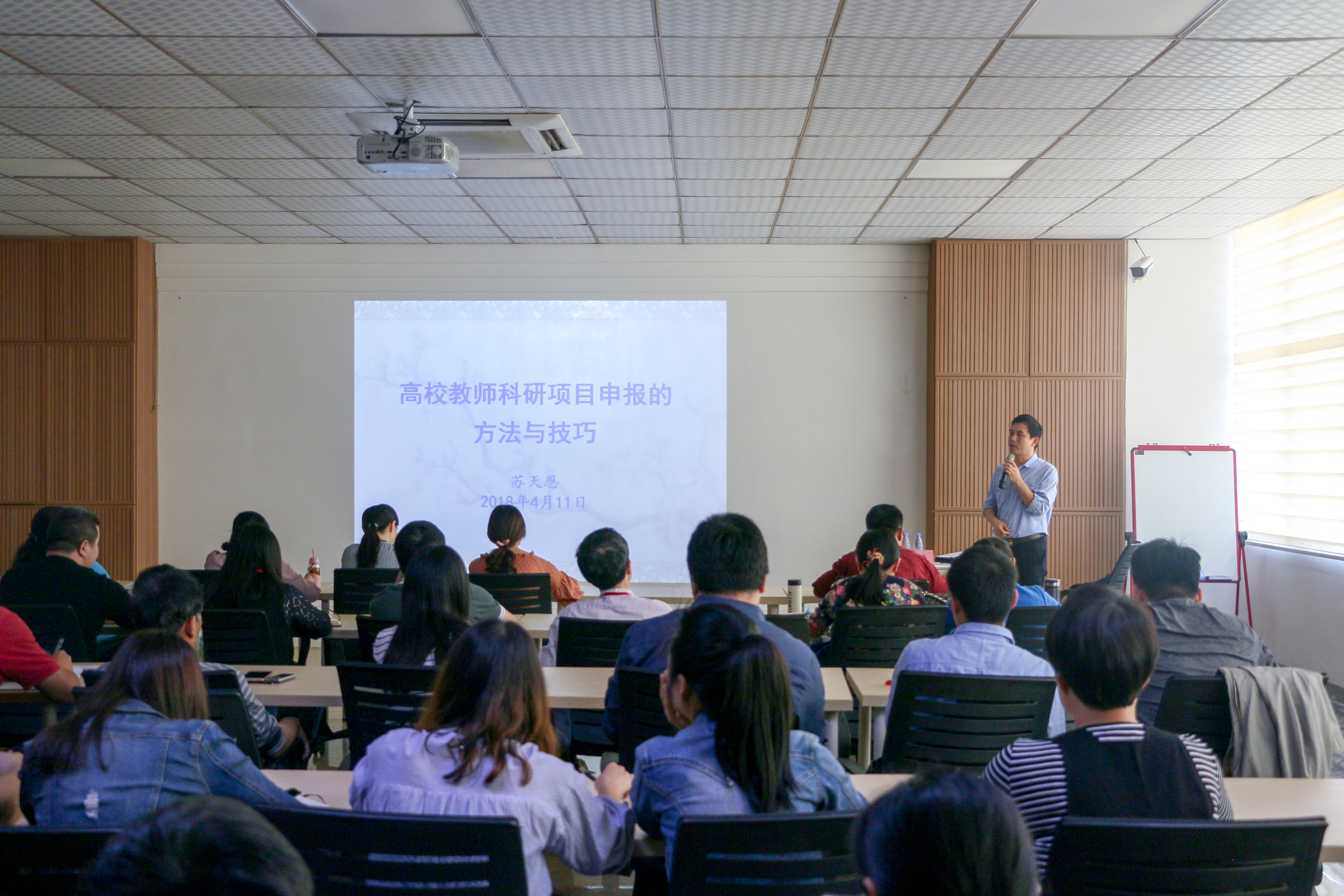 4月11日下午,“泉理大讲坛”之科研项目申报的方法与技巧讲座在第二会议室举行,邀请了泉州师范学院科研处副处长、硕士生导师、研究员苏天恩为主讲人。 苏天恩研究员从培养科研意识和科研习惯...