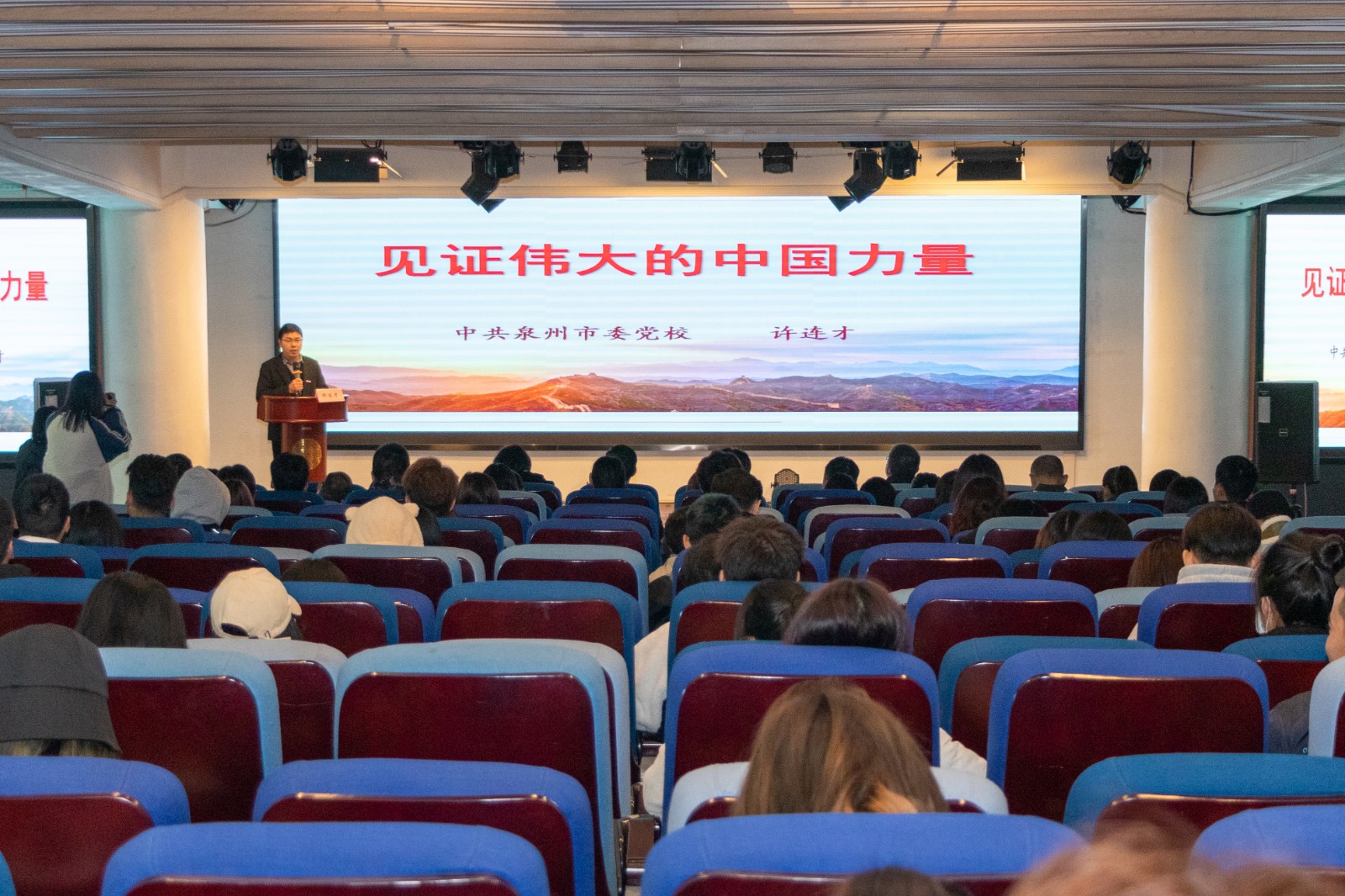 12月16日下午,由泉州市关工委组织的“抗疫精神宣讲”走进我校,特邀中共泉州市委党校讲师许连才老师在学校A633报告厅开展《见证伟大的中国力量》主题宣讲。泉州市政协原副主席、市关工委常务副主任陈元殿、市关工委...