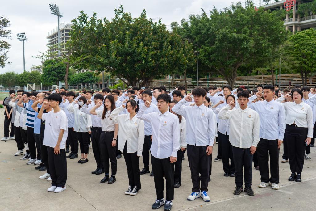 5月4日早上7点,我校举行2023年五四升国旗仪式暨上半年新发展团员入团仪式,隆重纪念“五四”运动104周年。校党委副书记、副校长蔡金佩,学生工作处、校团委、后勤保卫处、各书院相关负责人和全体思政辅导员,以及校级学生组织代表、青马班学员、各书院学生代表等600余人参加仪式。升旗仪式由校团委副书记曾子石主持。五星红旗伴随高亢、激昂的《义勇军进行曲》冉冉升起,全体师生庄严肃穆,行注目礼。国旗下,青马班学员陈彦作...