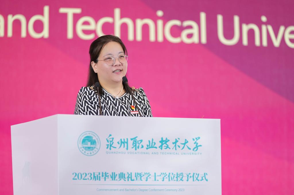 尊敬的各位领导、嘉宾,亲爱的同学、老师、校友们,远道而来的家长们,媒体朋友们:大家下午好!今天,我们怀着无比激动的心情,在这里隆重举行泉州职业技术大学2023届毕业典礼暨首届职业本科毕业生的学士学位授予仪式。首先,请允许我代表学校和全体教职员工向顺利完成学业的2023届本专科毕业生们送上最诚挚的祝贺和祝福!向辛勤养育你们的父母长辈、用心陪伴你们成长的师友致以最崇高的敬意!向全力支持泉州职业技术大学开启...