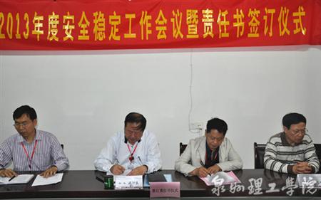 为贯彻落实中央、省、市关于加强校园安全稳定工作的部署要求,继续为开展落实安全教育和管理“标准化建设三年行动”,扎实做好创建“平安先行学校”考评验收的各项准备工作,泉州理工学院于 4月24日下午举行2013年...