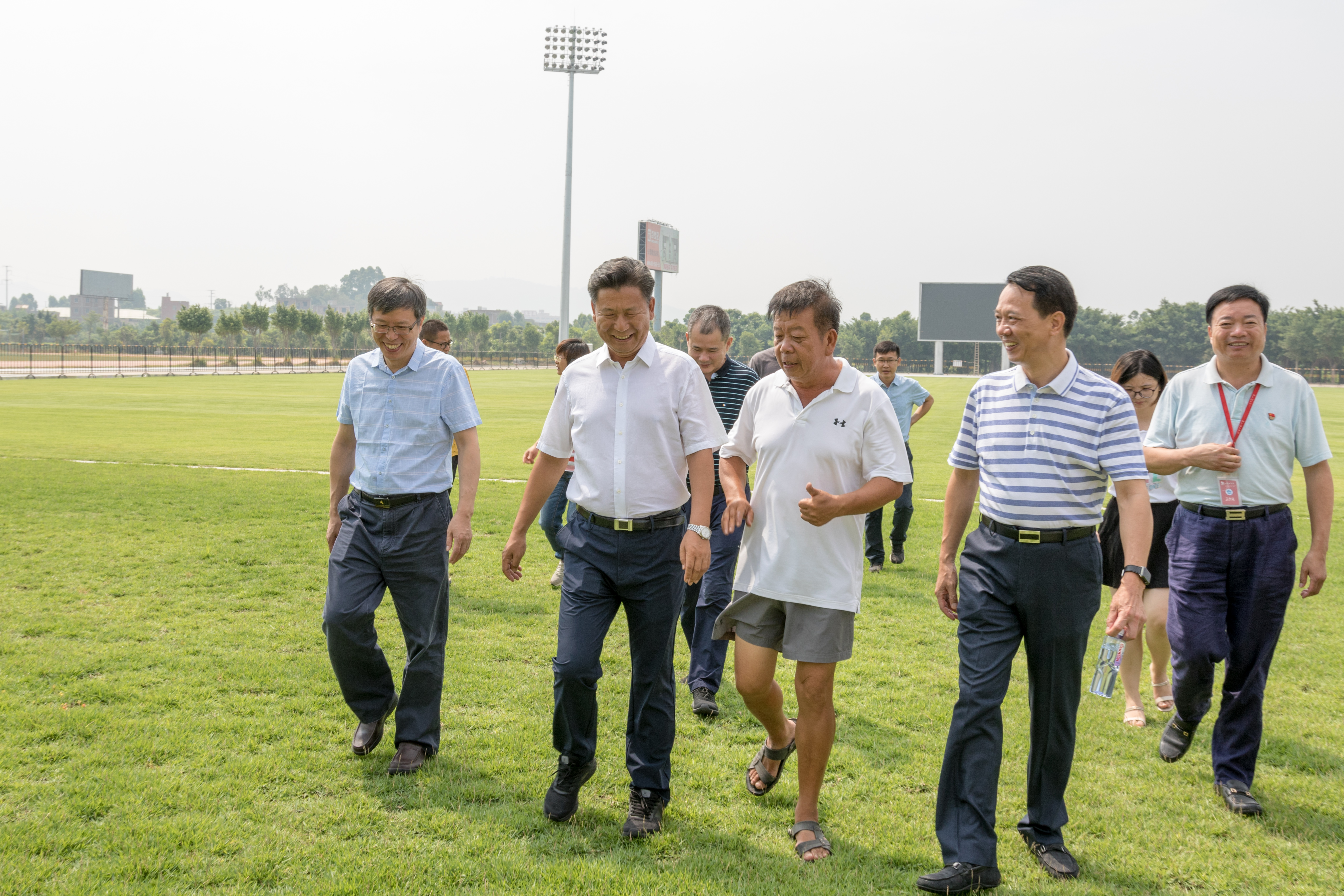 8月2日上午, 教育部体卫艺司司长王登峰、教育部体卫艺司体育处副主任贺鸣一行人莅临我校,实地视察足球场馆、学术交流中心等地。董事长吴金营、党委书记林其天、副校长庄文瑞等热情接待。王登峰司长表示,我校足球场馆、学术交流中心的建设达到了国际赛事所需求的标准,在接下来的比赛中,各事项都需要及时沟通协调相关部门(单位),争取将赛事办得漂亮、办得出彩。