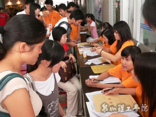 在我校办公大厅,迎新工作正繁忙而有序地进行着,这里设有新生接待处,家长休息室新生行李寄放处等多个服务点,并有各系各班级学生轮流值班接待新生。学生会成员和迎新生志愿者也尽职尽责,用热情周到的服务、细致耐心的引导、亲切温馨的笑容、温暖贴心的话语迎接新生的到来。在泉州市各个车站的校车停靠点,我校学生穿着印有“泉州理工学院”的T恤,高举着校牌,迎接08级新生,接待的同学热情地接过新生的行李,向他们介绍学院情况,并将他们带到学校接待处办理入学手续,安排好各方面事宜。