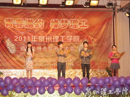 2011年“青春邀约,缘梦理工”迎新晚会暨表彰大会在思恩楼三楼大礼堂隆重举行。晚会不仅邀请了校长苏志明、副校长庄文瑞、党委副书记苏白茹、学工处处长郭变玲等学校领导前来观看,还邀请了教师、辅导员代表及学生代表进行评分。