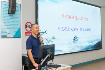 校党校邀请马克思主义学院张祖钧教授为毕业生党员上“谈谈共产党人的信仰”专题党课,勉励毕业生党员,在未来学习工作生活中,牢固树立正确的理想信念,恪守党的根本宗旨,把自己培养成为有利于党、有利于人民的合格建设者和可靠接班人。