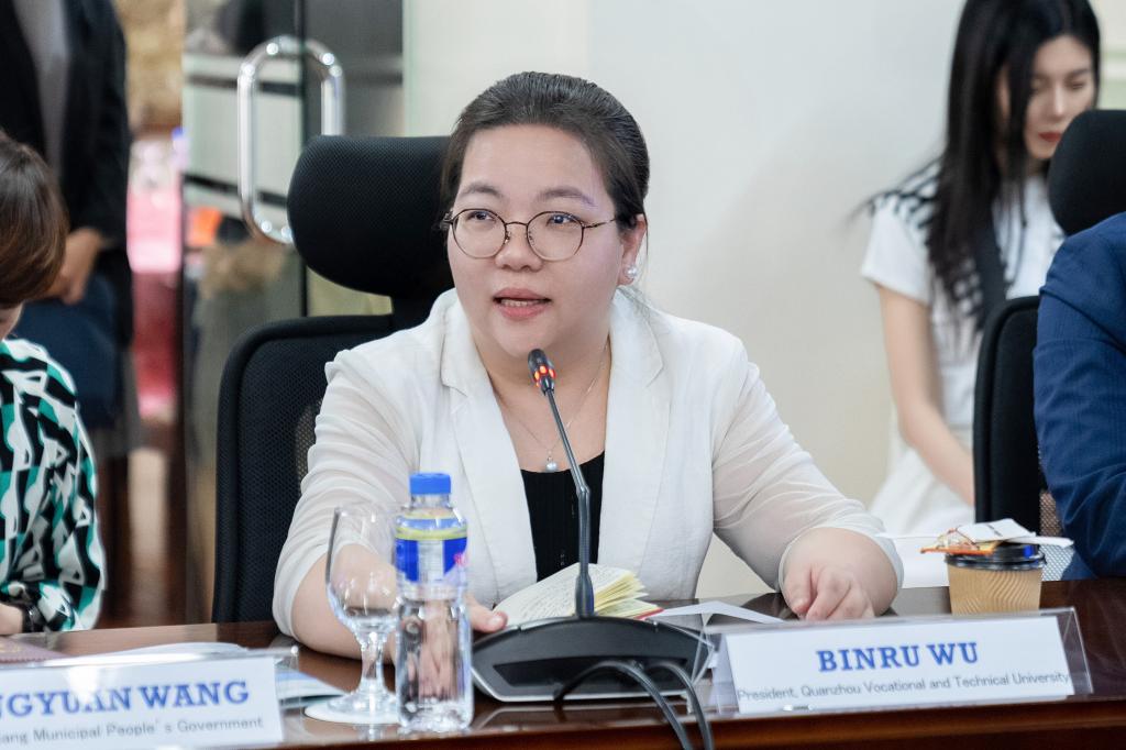 泉州职业技术大学校长吴滨如在致辞中表示,“菲律宾海丝学院”的签约令人振奋,这是学校办学历程的一件大事,是学校“职教出海”的标志性事件。泉大菲律宾海丝学院将秉承“教随产出、产教同行”的宗旨,参与到相关专业领域的国际教学(培训)标准、国际化教材及教学资源库建设,打造专业化的海外生产性公共实训示范平台,开展师资培训、技能培训等,推进“中文+职业技能”项目;同时将邀请晋江市域产教联合体的院校资源共同加入“抱团”建设好“菲律宾海丝学院”,服务区域企业“出海”的人才需求,打造具有“晋江经验”和福建特色的“海丝学院”品牌。