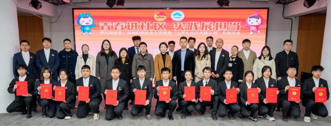 1月24日,晋江团市委与泉州职业技术大学团委联合开展“青春进社区,实践展担当”大学生社区实践计划共建活动暨首批大学生社区兼职团干聘任仪式。