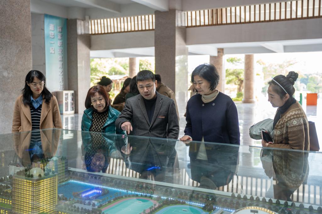调研组一行先后参观了校史馆,考察了艺术设计展厅、数媒直播基地、党建馆、数智产教融合展厅、拾德书院、“一站式”学生社区综合服务中心、新能源汽车产业学院等。蔡金佩向调研组一行详细介绍了我校的办学宗旨、办学特色,以及我校在科创育人、校企合作、数智培养、产业实践等方面取得的成效,展现了我校着力打造职业教育服务地方经济发展的新模式。