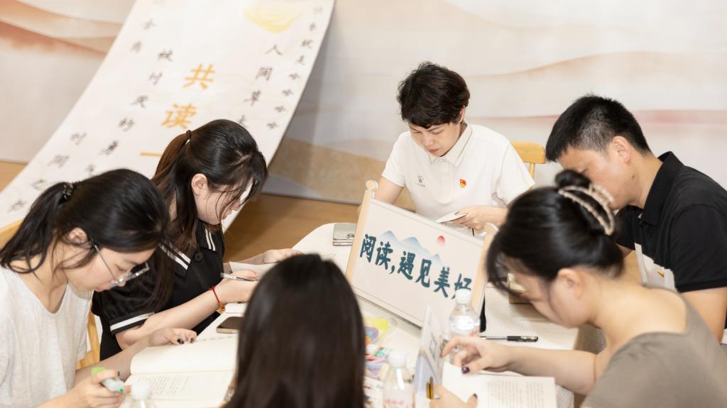活动分为线上共读与线下沙龙两大精彩篇章。在6月11日至17日的线上共读阶段,36名党员职工随机组成6个小组,围绕校图书馆精心推荐的书目及自选书籍,进行了为期7天的线上阅读打卡。他们每日在线上共读群中热烈讨论,记录笔记、摘抄金句,互相分享各自的读书心得。