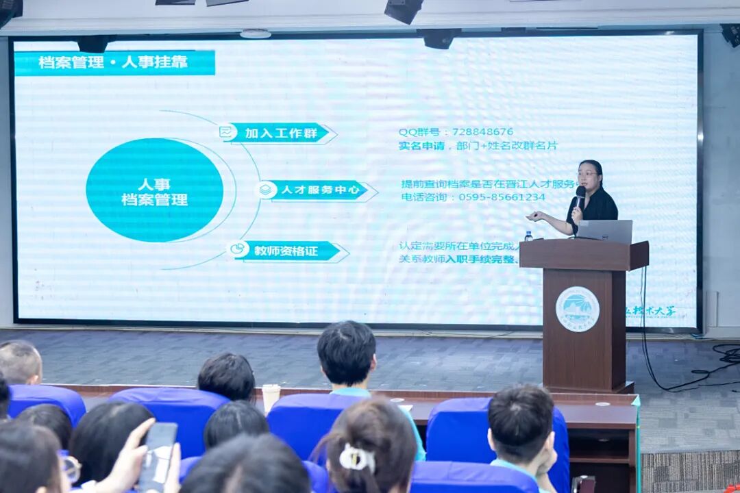 信息管理中心、图书档案馆、教务处、人事处等多部门联动,为新教师开展系列实用培训,校园OA、钉钉、学习通、泉小服等办公软件操作;数字图书资源使用;教学管理制度、人才培养方案解读;薪资、住宿、档案、发展通道介绍……事无巨细,全面覆盖。