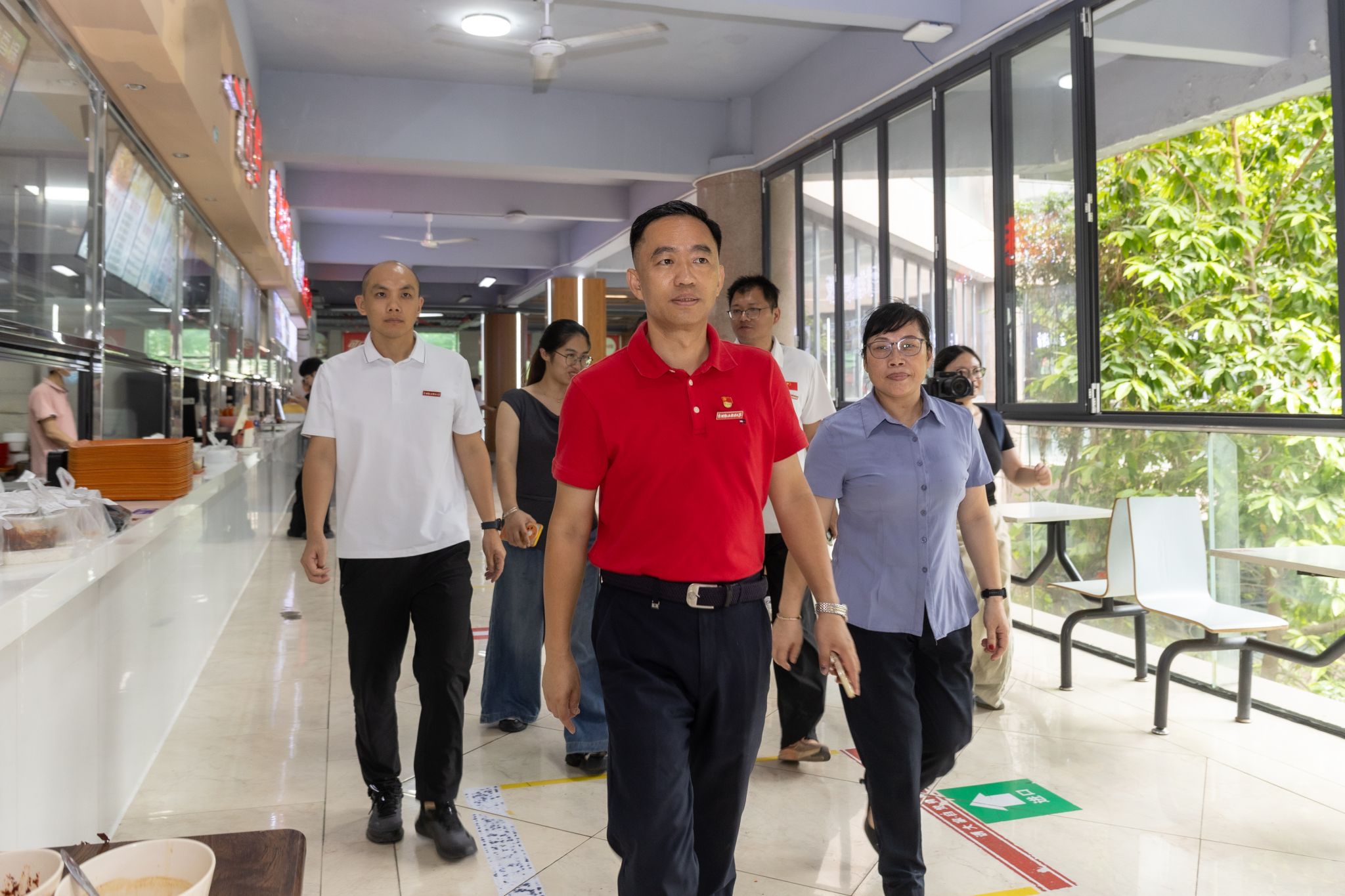 随后,傅志雄一行深入学校食堂后厨,实地察看环境卫生、食材储存、加工流程等关键环节,仔细询问食品安全管理制度落实情况,并结合前期学生会“食堂满意度调研”收集的学生意见,向食堂管理方反馈学生关切的问题。