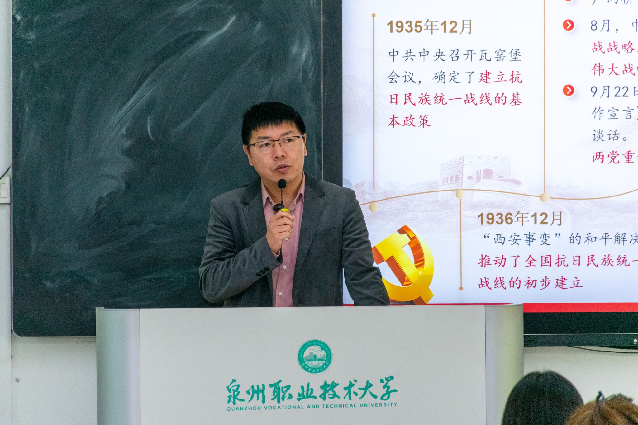 在课程中,蔡金佩通过讲述杨靖宇、赵一曼、狼牙山五壮士等英烈的感人事迹,生动诠释了抗战精神并非遥远的历史符号,而是融入民族血脉的精神基因。他强调,在当下,抗战精神依然是应对风险挑战、凝聚发展力量的重要支撑。面对复杂多变的国际形势和国内改革发展稳定任务,我们要从抗战精神中汲取奋进力量,坚定理想信念,勇于担当作为。