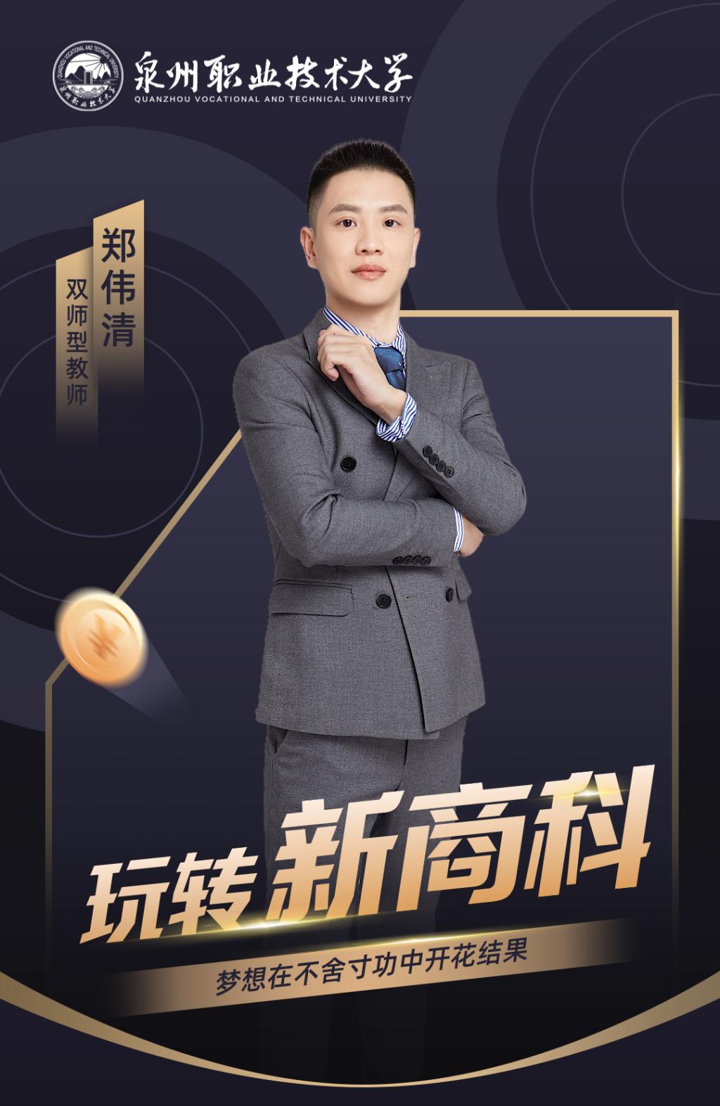 这堂课由90后的双师型教师郑伟清带来,他连续两个学期在学校教师质量评比中获得优秀,获评泉大教学质量奖。10年来,他潜心教学,花大把时间备课,将课堂打造得像商战片,每堂课都有新“剧情”。课堂上,同学们犹如追剧般沉浸其中,在润物无声中学习成长。