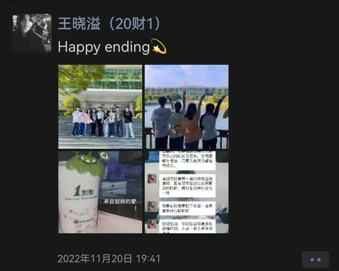 感谢郑老师能选中我去参加这场比赛,让我能将所学知识与实践相结合,并学习其他新知识。比赛中,我们收获不仅是奖项,更延伸了课外知识。我们学会如何进行审计软件的运用,如何自己去寻找答案,并结合所学知识进行创新……