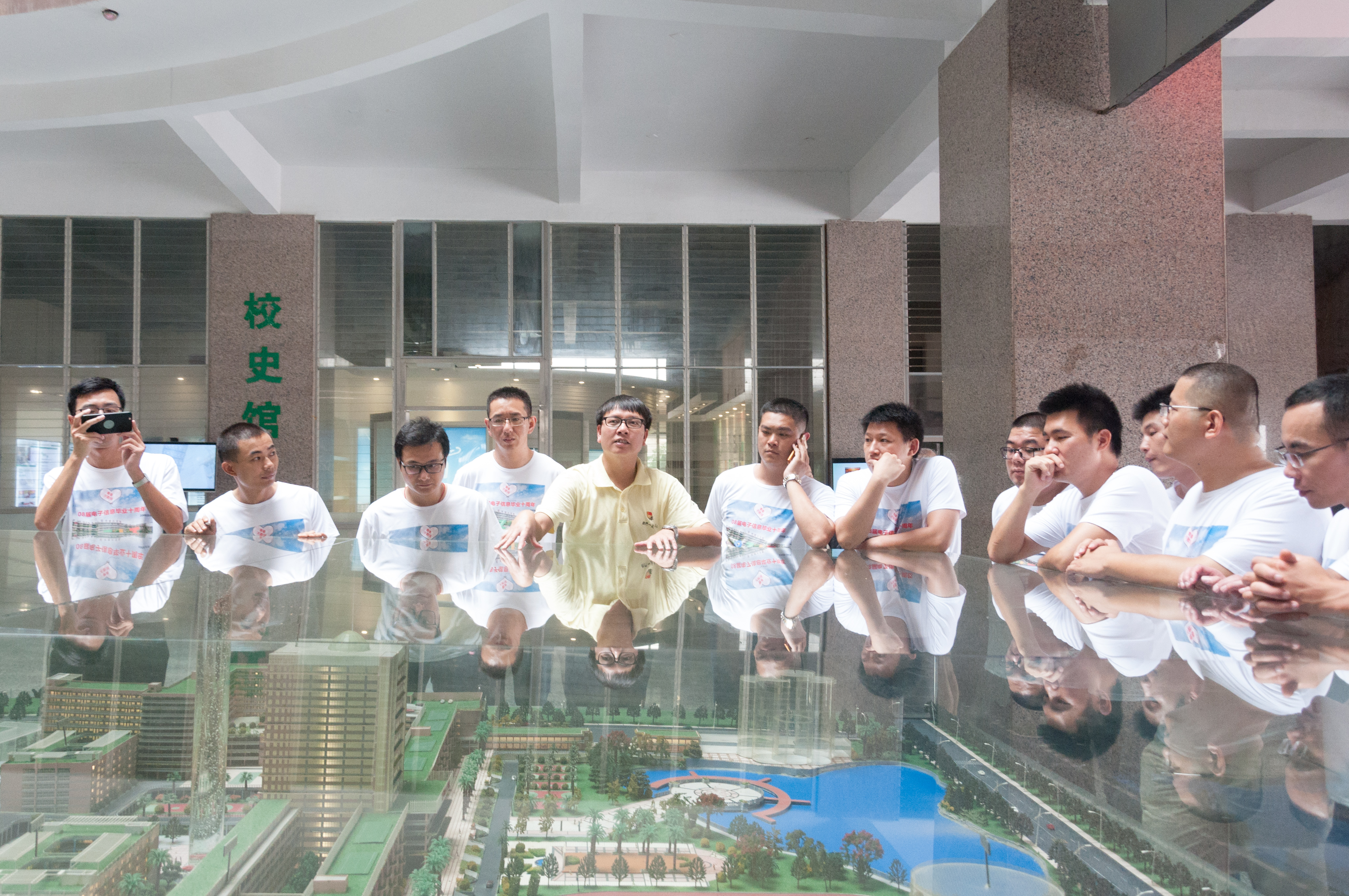 校友们穿着特制的纪念T恤,一同游览新校区,回忆校园点点滴滴。在参观校史馆后,看到学校取得的一项项傲人的成绩后,许多校友都不“淡定”了。“学校的变化真的太大了,环境更好,成绩更是喜人。”电子信息工程技术专业的傅东海高兴地说。在看到“永不止步”展区时,校友们纷纷驻足,一同回忆起曾经晨跑的日子。会计3班的陈珏激动地说:“看着这个展区,好多回忆都涌上来了,早锻炼真的是一生都无法忘怀的时光。”