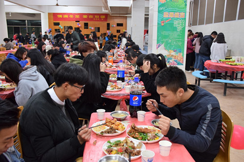12月22日,是华夏二十四节气之一,最重要的节气之一。古人对冬至的说法是:阴极之至,阳气始生,日南至,日短之至,日影长之至,故曰"冬至"。冬至作为一个节日,至今已有2500年以上的历史。在这个特殊的节日里,商学院团总支组织旗下各部门齐聚食堂三楼开展冬日家宴聚餐活动。