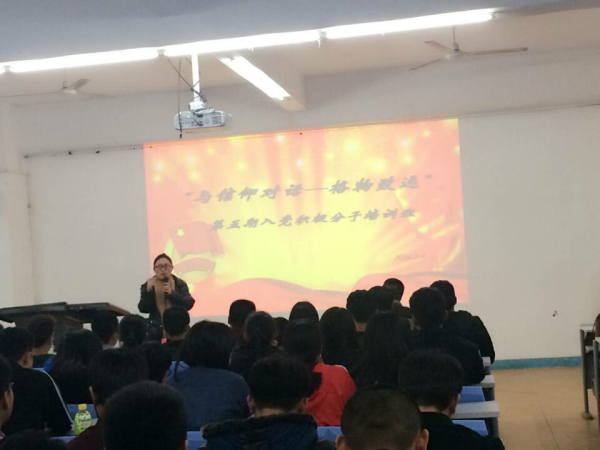 为了加强对我系入党积极分子的培养和教育,创建学习型党组织,2016年3月9日下午, 建筑系“与信仰对话--格物致远”第五期入党积极分子培训班开幕式在教学楼238教室举行,培训班由王秋玲主持。出席本次开幕式的有吴金营董事长、党委副书记黄志梅老师、学工处处长杨津平老师,建筑系党总支书记黄镇红老师,第二党支部书记王秋玲老师,团总支书记黄鸿老师,2014级辅导员薛平老师。参加本期培训班的学员共115名,主要来自2015级的入党积极分子。