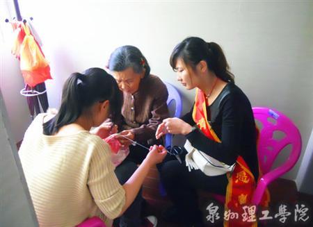 3 月23日 ,车辆工程系的志愿者们走进磁灶镇大埔村敬老院,志愿者们 为敬老院的老爷爷老奶奶们帮忙洗衣服洗被子、缝补衣服、为老人们演唱闽南语歌曲,陪老人们聊天。