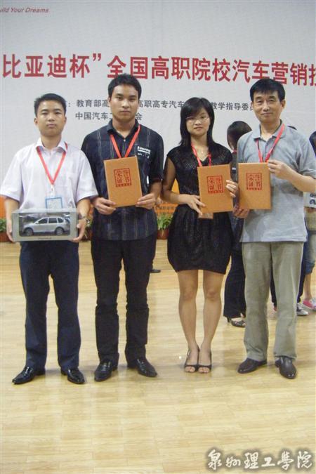 由教育部高等学校高职高专汽车类专业教学指导委员会和中国汽车工程学会主办的2010年“比亚迪”杯全国高职院校汽车营销技能大赛于2010年5月20日、21日在深圳举行。我校